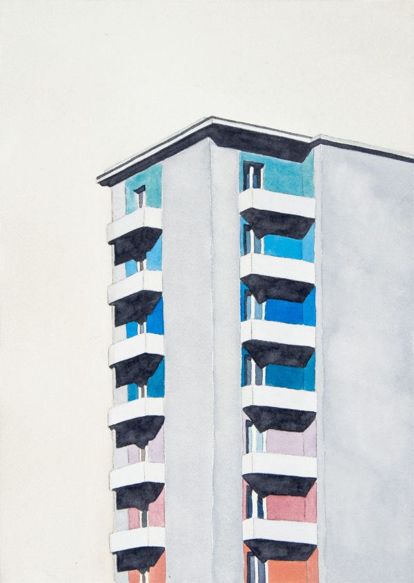 Fabian Erik Patzak, Balconies on Wagramerstrasse II, Wien 2015 Aquarell auf Papier 35 x 25 cm © Patzak