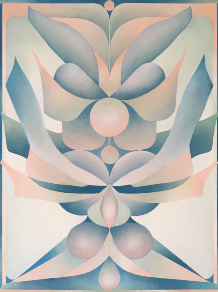 Die geometrischen, meditativen Kompositionen von Anita Schmid in Ölkreide auf Papier funktionieren wie visuelle Übersetzungen innerer spiritueller Erfahrungen, die in abstrakte Formen, Farben und Muster verwandelt werden und lassen unsichtbare Energien erscheinen und verschwinden, wie in einem Kaleidoskop.
