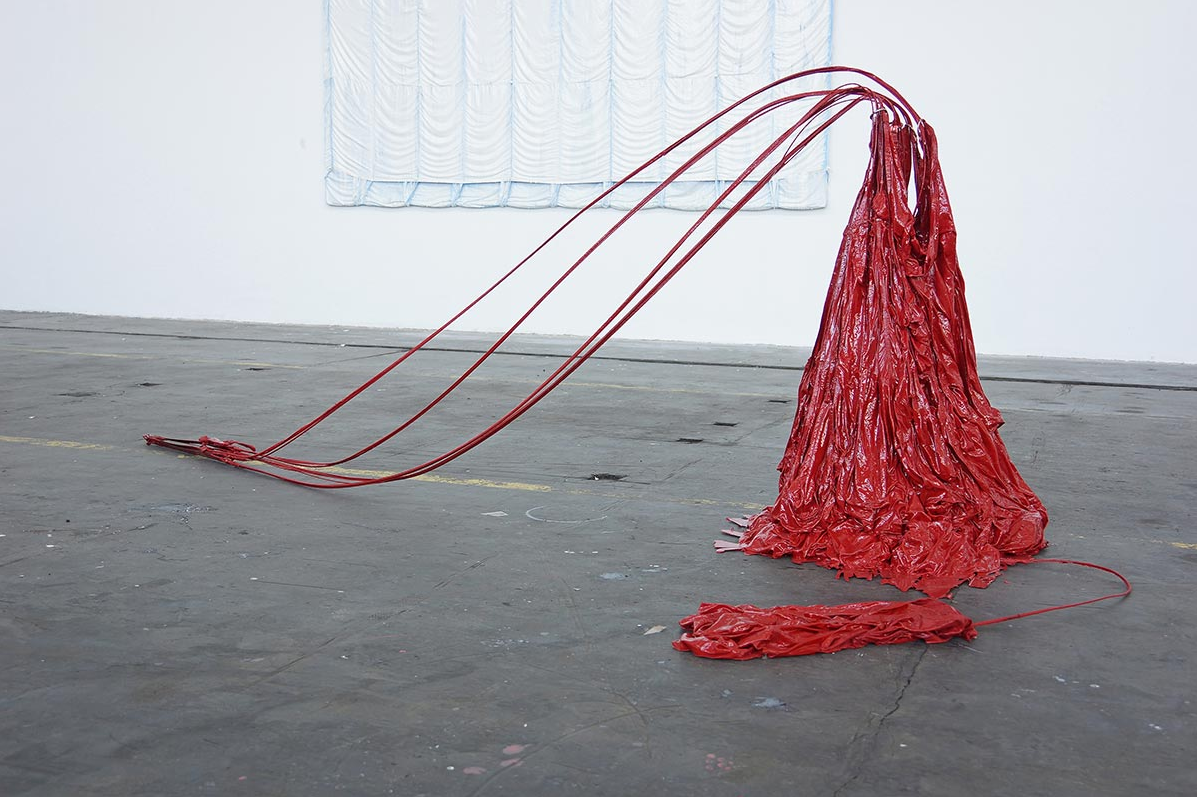 PARACHUTE SCULPTURE #6 (RED), 2016, Resin on main parachute, 130x120 cm © Kunst an der Grenze
