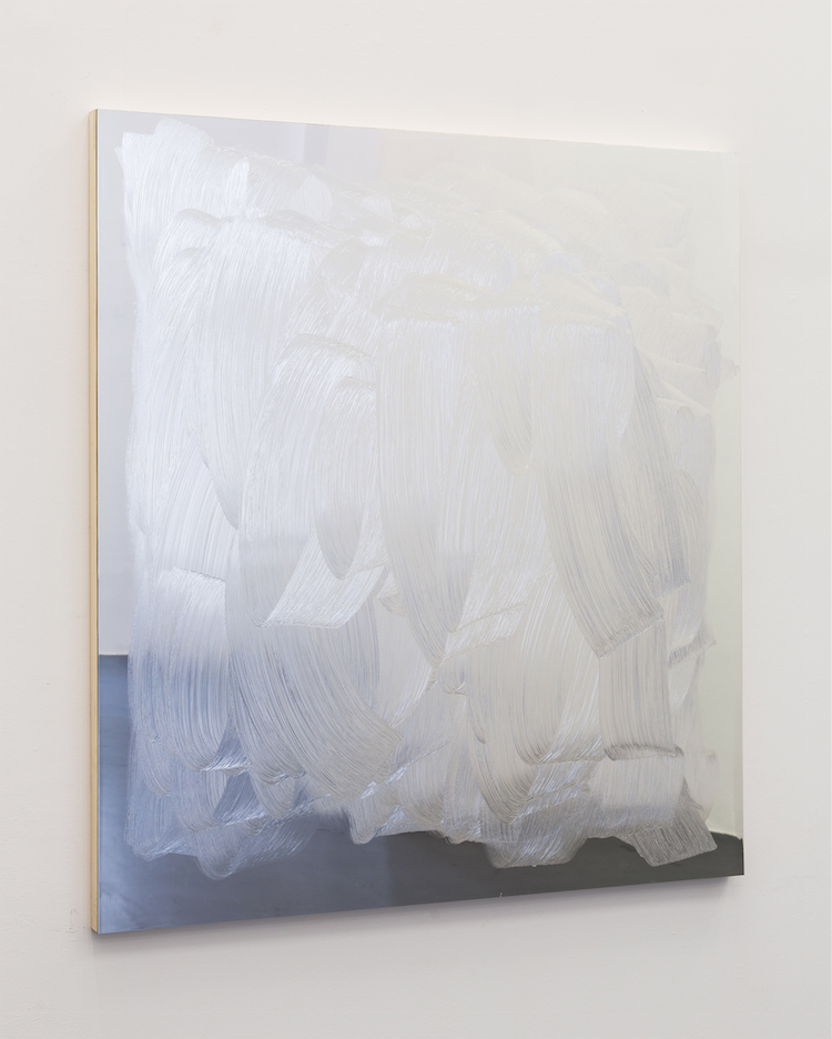 In my view, the outermost limits to this approach were attained when Lavier even decided to paint directly onto a painting by one of his contemporaries, François Morellet. Appropriating a piece by Morellet and covering it with paint that identically matches the abstraction and conceptual impulse of the original work, thanks to his famous “a la van Gogh” touch, Lavier makes the original canvas invisible, even as he magnifies its scope. He liberates himself from the rule which demands that a work of art speaks for its time, even while paying homage to the artist and finally transforming the object into a kind of painting icon, a figurative representation of the original abstract concept. Among my favorite works, a series of mirrors which Lavier began in the 1980s, even abandons the pretext of the painterly motif. Lavier is happy to evoke a mirror, itself denied its function by the painter, a constraint imposed by the artist himself, because the mirror can no longer serve as a reflecting glass. Once again, painting is forced to “reflect” on itself.