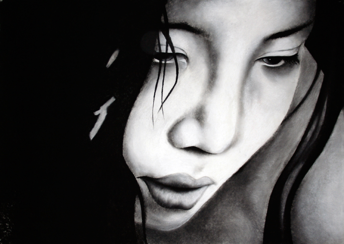 Mittels der Reduktion auf weisse und schwarze Pastellkreide kontrastieren die Werke mit unserer farbintensiven Gegenwart. Es vollzieht sich eine Beziehung zwischen Vergangenheit und Gegenwart, die einen dokumentarischen Charakter aufweist. Die ‚dunklen Halbwelten‘ sowie die Schwebemomente zwischen Gegensatzpaaren wie Endlichkeit und Ewigkeit, Schlaf und Hypnose, Ekstase und Tod werden durch den Kontrast wesentlich untermauert.