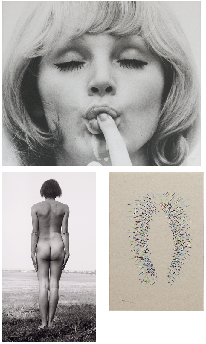 Natalia LL’s work has invited many feminist interpretations, which underlined the presence of the problems of sexuality and eroticism contradicting the status quo of social and cultural patriarchal structures. The artist’s works from the 1970s feature the themes of confrontation with male viewer, objection to ”phallic structures” and the issues of shaping female identity against tradition by means of taking over social, cultural and political activity – represented by the image of a woman who takes the sway and active position in eroticism. In the 1970s in Poland, it was significant not only from the individual perspective, but also the social and the political. The visualisation of satisfying sexual needs by a woman and equal rights in the domain of sex were received as somewhat of pornography, with the artist’s exhibitions censored and no public displays allowed. The art of Natalia LL became a political tool, an instrument of fight for equal rights, defining identity on the basis of consciousness-related look upon oneself. The photographs documenting a sexual intercourse that form the work entitled Intimate Sphere (1969) are a result of fascination with the carnal and the potential of human sexuality. They can be regarded as a penetration of the intimate sphere and exhibitionist acts of courage, which breach the moral schemes of the Polish society of the turn of the 1960s and 70s. At the same time, they became a link with the sexual revolution taking course in the countries of democratic Western Europe and the USA. In 1974 the artist composed of those photos the inscription: NATALIA IST SEX. However, the fascination with intimacy and sexuality thorugh an act of provocation against ubiquitous censorship gains the dimension of a question about the identity and conscious existence of citizens in a totalitarian system. This declaration – from a woman in the 1970s in Poland publically admitting gaining control over the sphere of sexual activity is to be interpreted in the political categories as an act of an utmost significance for the future of revolutionary movements of the 1970s and 80s in Poland. A woman aware of her sexuality, beauty, and the power stemming from them breached the standards of social composition based on subordination of women. Sexuality of the 1970s in Poland (as opposed to democratic countries) did not function in the public sphere. Its appearance breached not only the social foundations, but also the political basis.