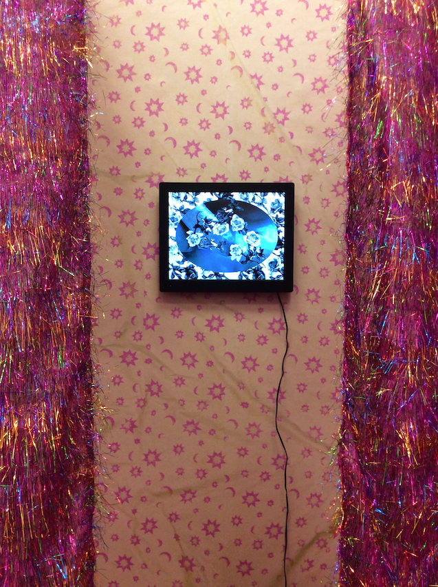 Detail of "Trilogie (Peep-Show Koje Nr. 1)", 2011, Mixed media , Video, Tapete, 200 x 75 x 80 cm