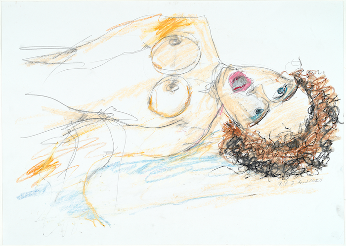 Renate Bertlmann, Eva III, 2020, Bleistift, Ölkreide auf Papier, 50 x 70 cm
