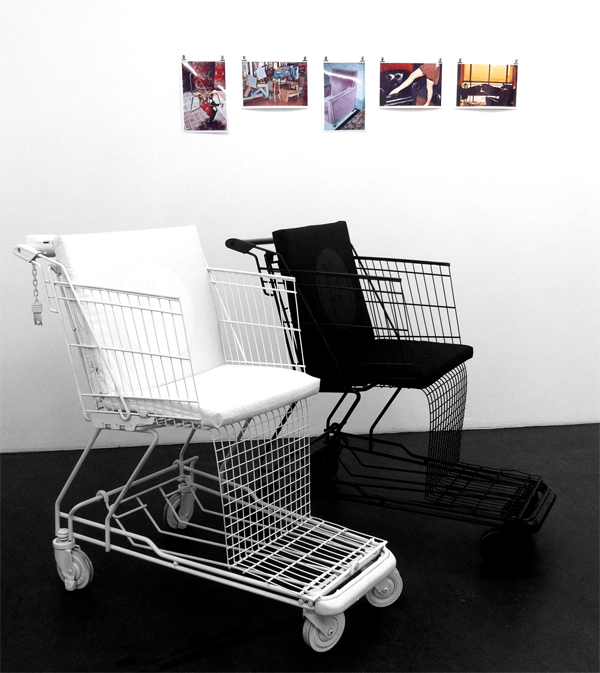 Während der Stuhl an sich eine zivilisatorische Errungenschaft darstellt, bringt Manfred Erjautz mit seinem „electric chair“ eher die Ambivalenz dieser Zivilisation zum Ausdruck. Gebaut aus Lego-Bausteinen präsentiert sich das Produkt technischen Fortschritts als Ausgeburt archaischer Triebe. Einen ähnlichen Ansatz verfolgt Clemens Wolf. Ausgehend von seiner Serie ölüberzogener Einkaufswagen hat er zwei solcher Objekte kurzerhand zu Sitzgelegenheiten umfunktioniert. Das Symbol hohlen Konsumismus führt er mit dieser humorvollen Wendung wieder einem sinnvollen Dasein zu. Bei Peter Brauneis bedeutet das Sich-Niederlassen einen Aufstieg: Auf seiner lebensgroßen Pferdeplastik sitzt eine blonde Frau. Das Sitzen verweist auch hier auf das Verhältnis des Subjekts zur Welt („Elke-Madonna auf Überfall“). Gudrun Kampl verweist mit ihrem Schaukel-Objekt und darauf sitzenden Fetischen auf den eher bacchantischen Aspekt des Sitzens. Julius Deutschbauer präsentiert mit gewohnt lapidarem Humor einen mit Plakaten überzogenen Stuhl. Daneben ist auch eine Reihe von Arbeiten zu sehen, bei der Stühle und Sessel gemalt, gezeichnet oder fotografiert dargestellt werden.