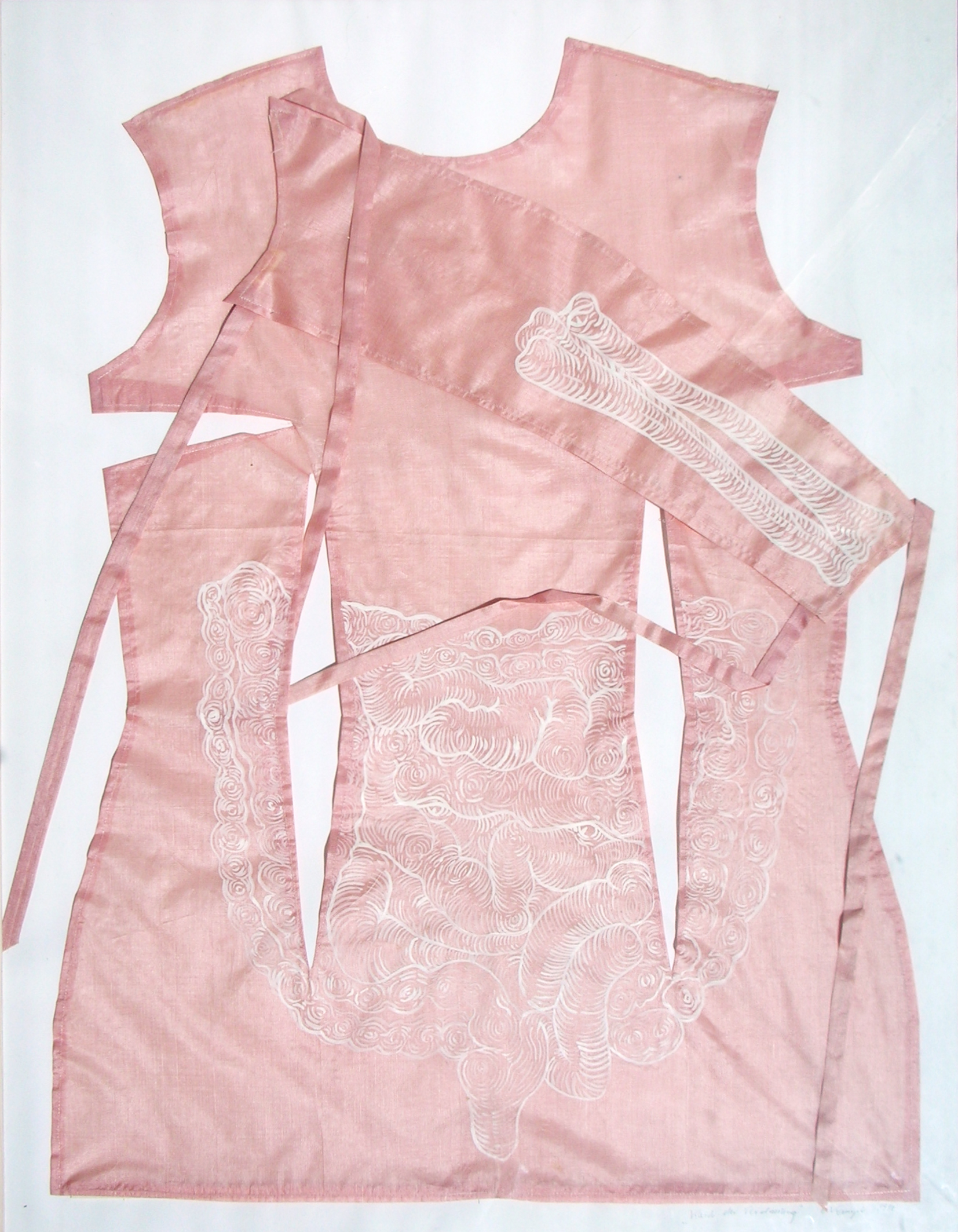 Gudrun Kampl, Kleid der Verdauung, 1998, Akryl auf Seide, 72 x 52 cm